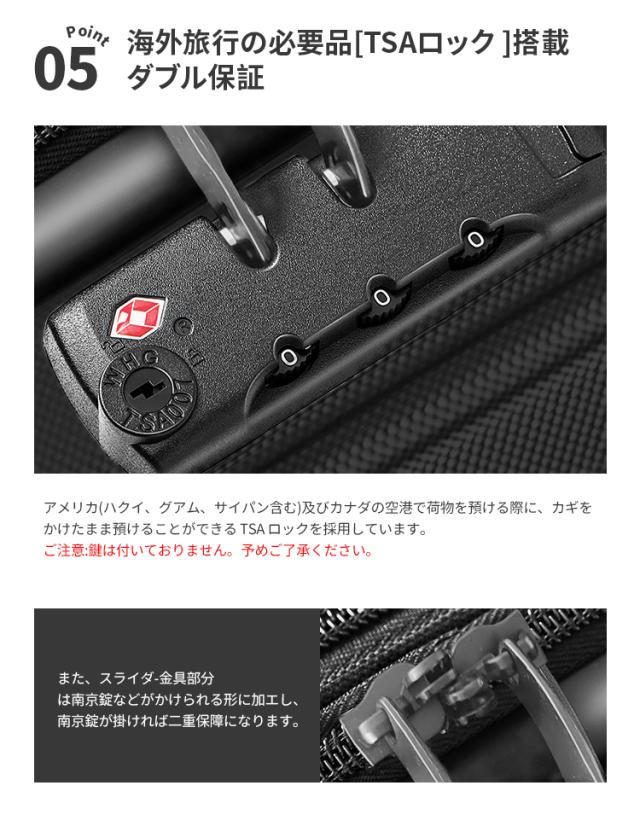- ポイント使用で、時間がなく、もう少しゆっくり選びたかったですが、商品を見て、気に入ってます♪TSAロックの設定が、間違えてたらどうしようかと不安ですが…? ひとまず、旅行に行くのが今から楽しみです♪
