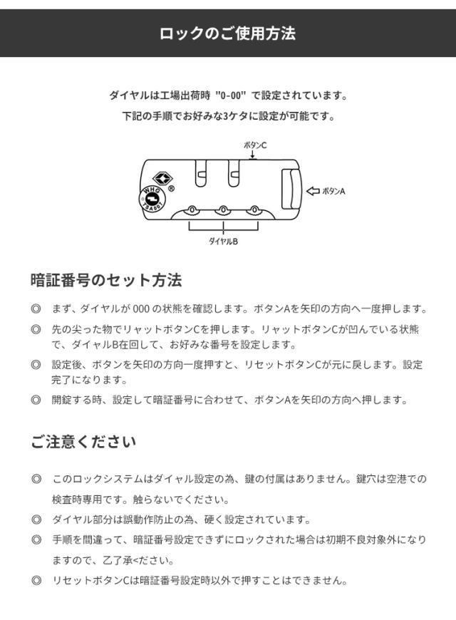 ●ご注意:設定した暗証番号を忘れてロックされた場合は初期不良対象外になりますので、ご了承ください。