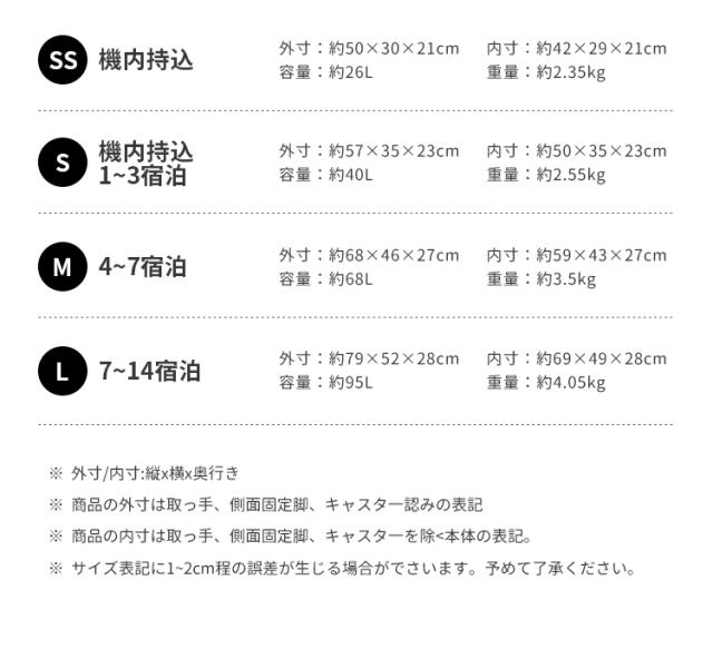 - SとMのサイズ違いのキャリーバック。 見た目も良く、軽くて使いやすそうです。 近々旅行に行く予定があるので、使うのが楽しみです!