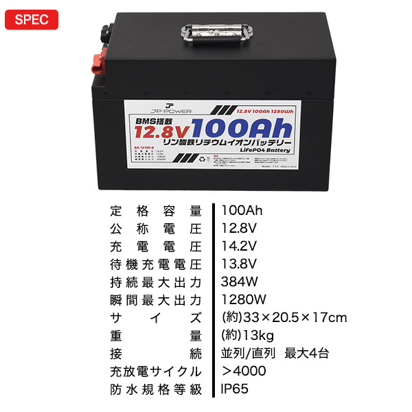 リン酸鉄リチウムイオンバッテリー 12.8V 100Ah キャンピングカー 予備バッテリー BMS保護 LiFePO4バッテリー 4000回以上サイクル 災害対策 直列並列可能 サブバッテリー 1280wh バッテリー 防災 地震 台風 避難 停電対策 非常用電源 おすすめ 防災グッズ 防災用品