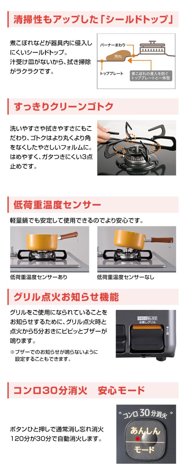 ・コンロ・グリル消し忘れ消火機能:● (コンロ120分/グリル22分)