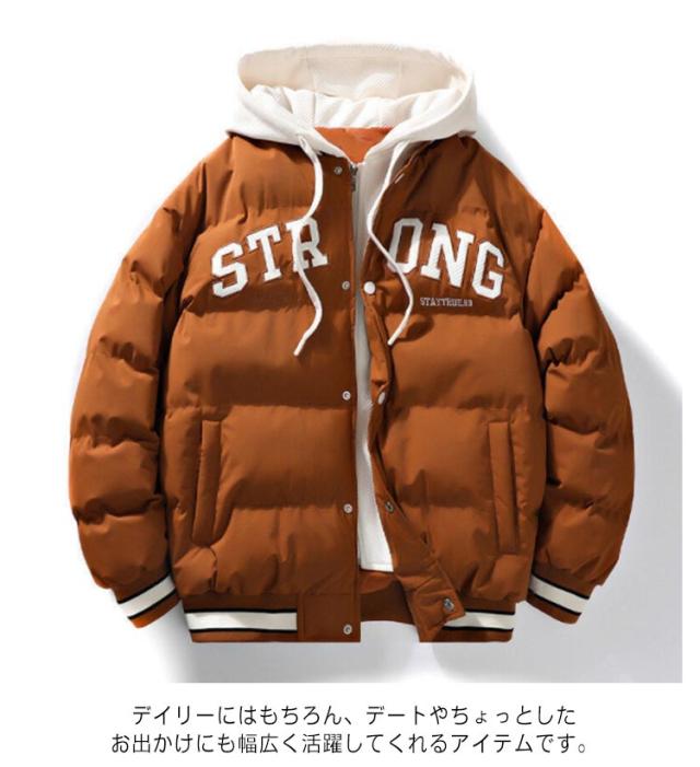 フェイクレイヤード 中綿ジャケット メンズ スタジャン ジャケット フード付き 秋冬アウター 中綿コート 大きいサイズ レディース ゆったり おしゃれ 防風 ストリート系 アメカジ M L XL 2XL 3XL 4XL