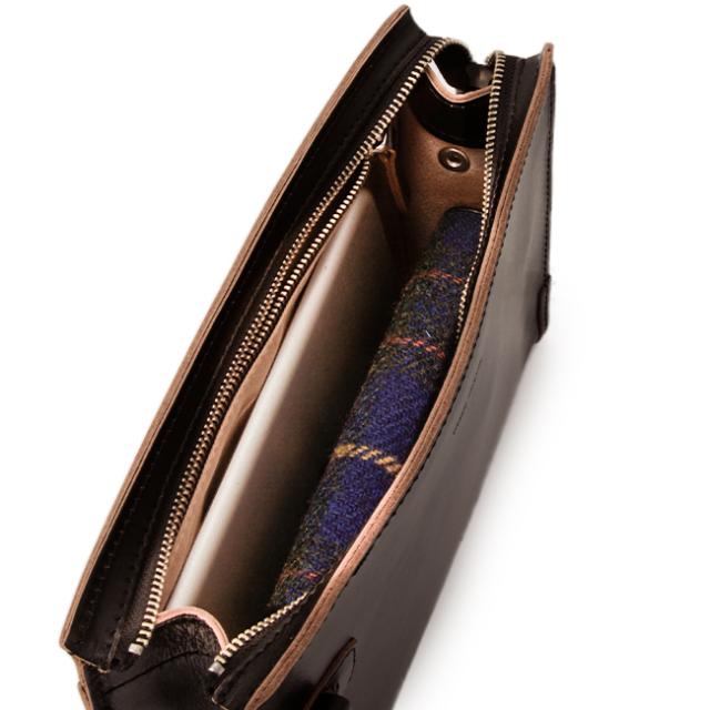 本体幅がしっかりと設けられているため長財布やタブレットなどもスマートに収納可能です。タブレットサイズ:W134.7 H200 D7.2[mm]