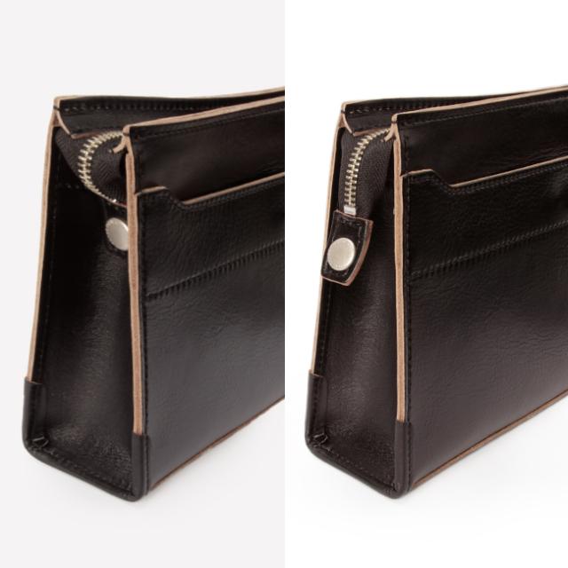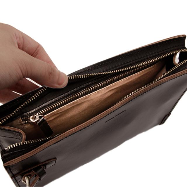 | 天然皮革を使用したTAKEO KIKUCHI(タケオキクチ)のクラッチバッグが登場。 本体はシンプルなスクエア型でマチがしっかりしているため、長財布なども楽々と格納できる安心仕様に。 天然皮革ならではの質感を最大限に感じられるよう、エッジの切れ目で仕上げナチュラルな革の色をデザインのポイントとして仕上げました。底のコーナーにあたる部分には、使い込んだ際にヘタリが少ないよう厚めのヘリ巻きを施しており、革職人のこだわりが感じられるタケオキクチらしいこだわりと実用性を両立したクラッチバッグです。 |