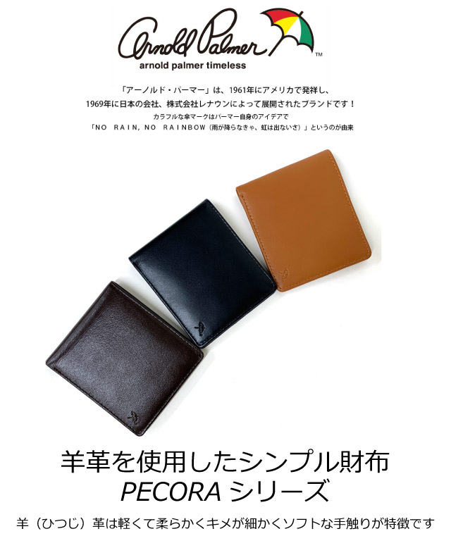 二つ折り財布 メンズ 羊革 ARNORD PALMER アーノルドパーマー PECORA 二つ折り札入れ 4ap3312 2つ折り財布 財布 メンズ財布 本革 レザー お洒落 メンズ 男性用 男子 折りたたみ財布 小銭入れなし プレゼント ギフト お誕生日 クリスマス 父の日 実用的 高級感 黒 茶