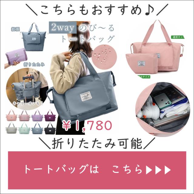 | 商品 特徴 | 【持ち運び簡単】 折りたたむとコンパクトになるので、持ち運びや使用しない時の収納にも便利です。 【旅行にも】 後ろのポケットはキャリーバッグにかけることもできるので、旅行の際のサブバッグとしても大活躍します! 【多用途】 超軽量で撥水性のある生地なので、お出かけや旅行はもちろん、スポーツジムや温泉、プールにも最適。お子様がいる方のマザーズバッグとしてもとっても便利です☆ |