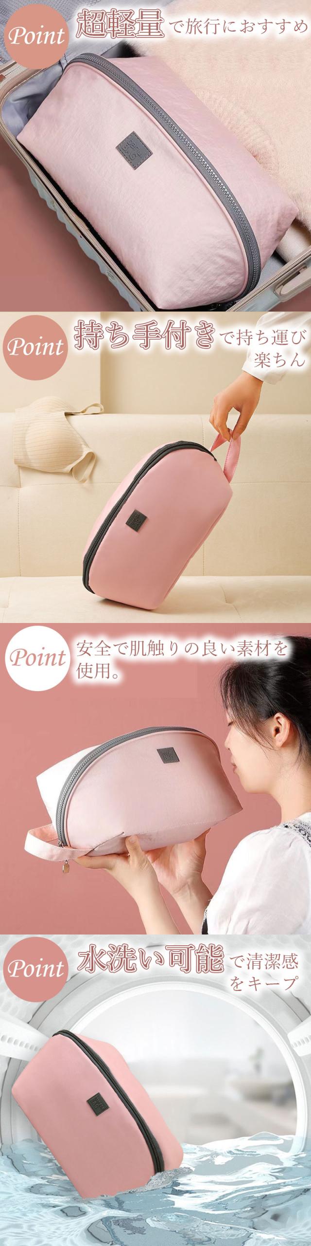 | 商品 特徴 | 【使いやすい】 180°に開くので中身が分かりやすく取り出しやすい!持ち手付きなので持ち運びにも便利です。 【大容量】 超軽量なのにたっぷり入ってとっても便利♪長期の旅行や出張にもおすすめの大容量です。 【丸洗い可能】 洗えるポーチなので清潔感をキープして使用できます。 【多用途】 下着の収納だけでなく、衣類や化粧品、スキンケア用品などの収納も可能! |