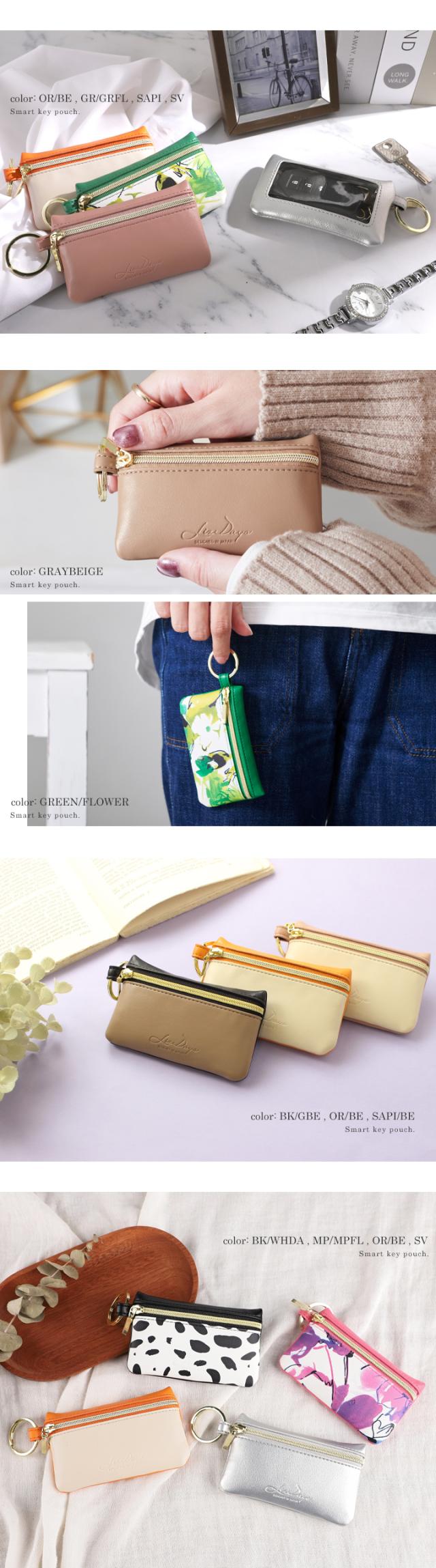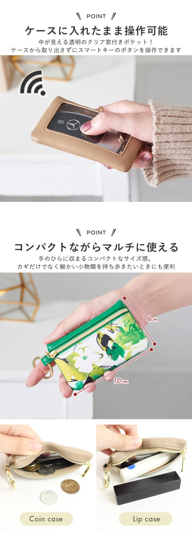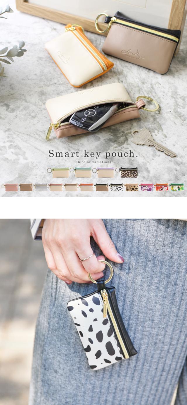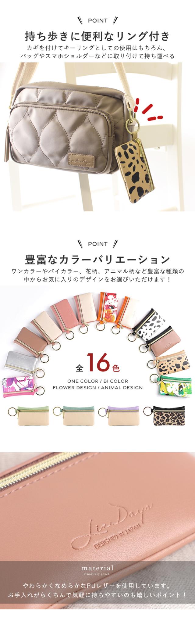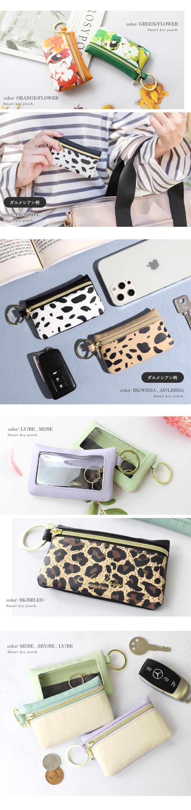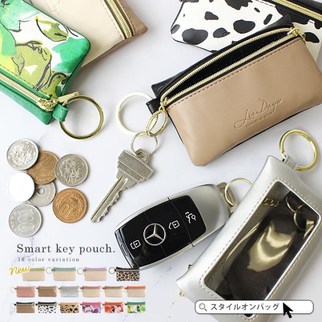 キーケース レディース キーポーチ スマートキー ケース メンズ 窓付き クリア窓 スマートキーカバー リング 小物入れ 小さい コンパクト おしゃれ かわいい 家の鍵 花柄 ダルメシアン LIZDAYS リズデイズ スタイルオンバック シルバー 即納【lz-68302】