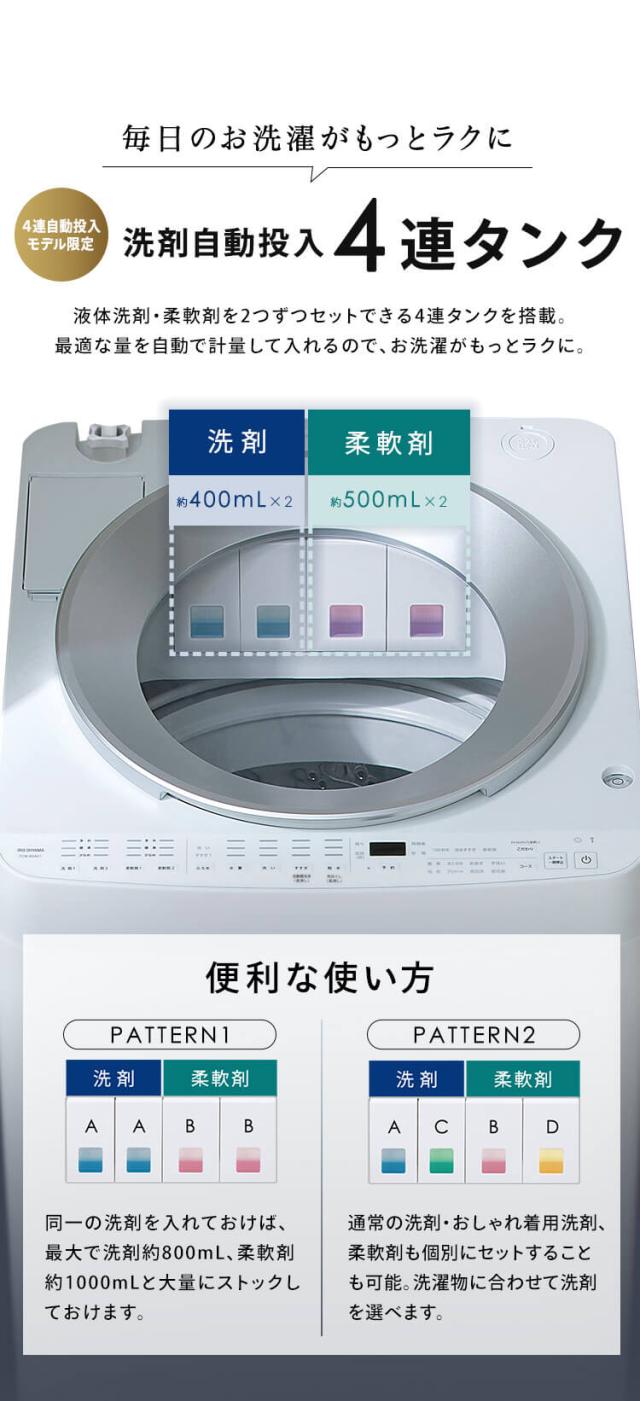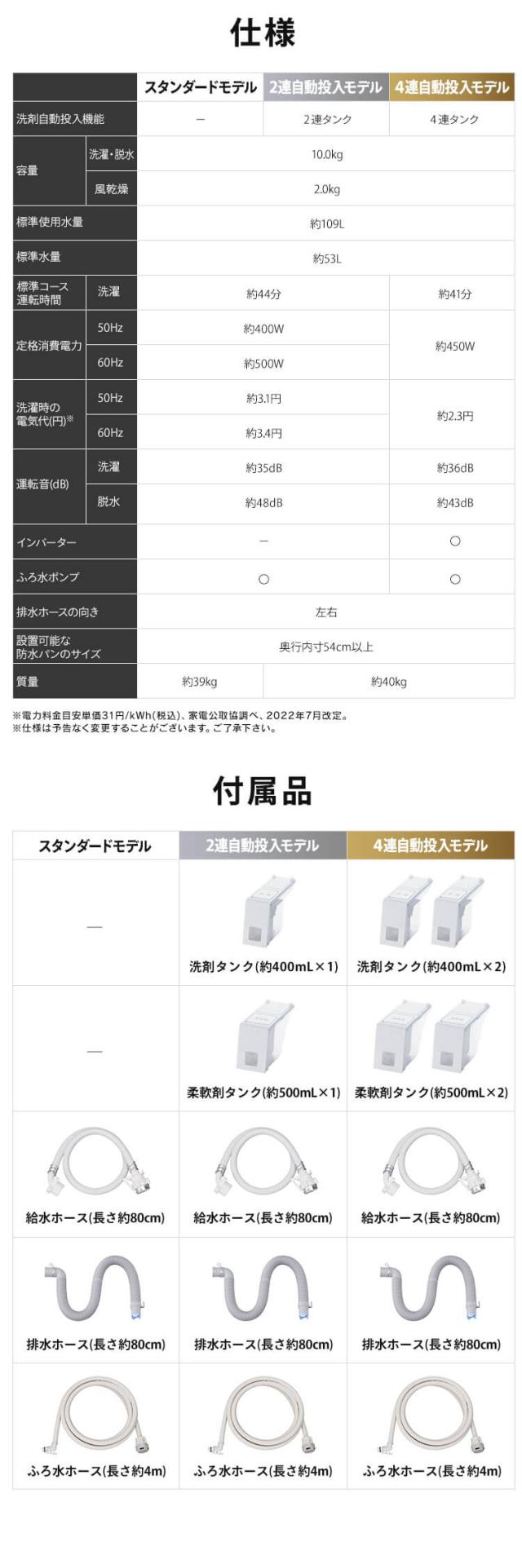 洗剤自動投入タンク非搭載のスタンダードモデル。