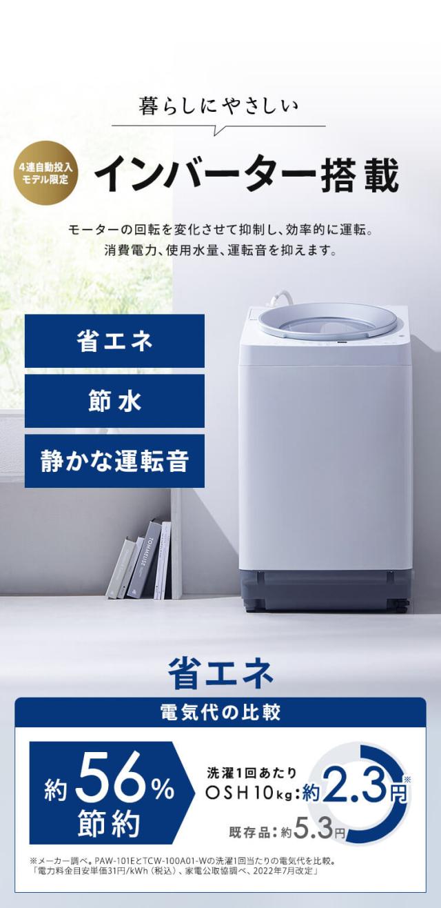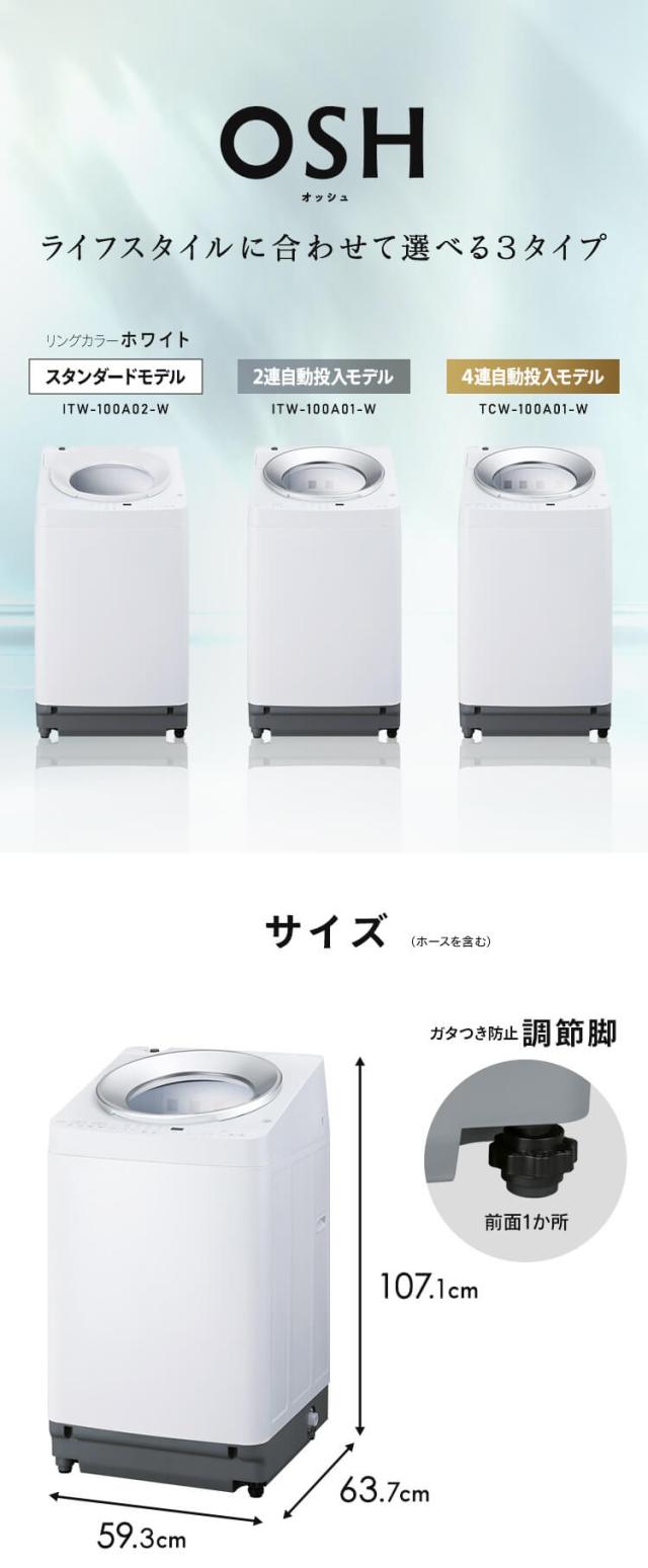 洗濯機 10キロ 10kg OSH オッシュ 縦型 一人暮らし 家族向け アイリスオーヤマ 全自動洗濯機 縦型洗濯機 ガチ落ち極渦洗浄 節水 節電 ITW-100A02-W