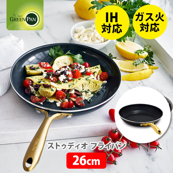 GREENPAN グリーンパン ストゥディオ フライパン 26cm CC007340-004 送料無料 IH対応 セラミックコーティング ゴールドハンドル PFAS エコ 時短 料理 キッチン