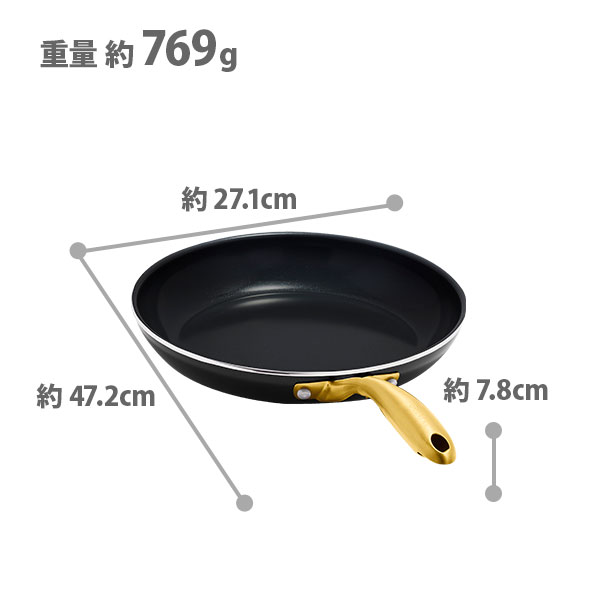 ハンドルが中空になっているので軽く、調理やお手入れをしやすい点も嬉しいポイントです。 ブラックのボディとゴールドのハンドルの上品なデザインは、調理後そのまま食卓にサービングするのもおすすめです。