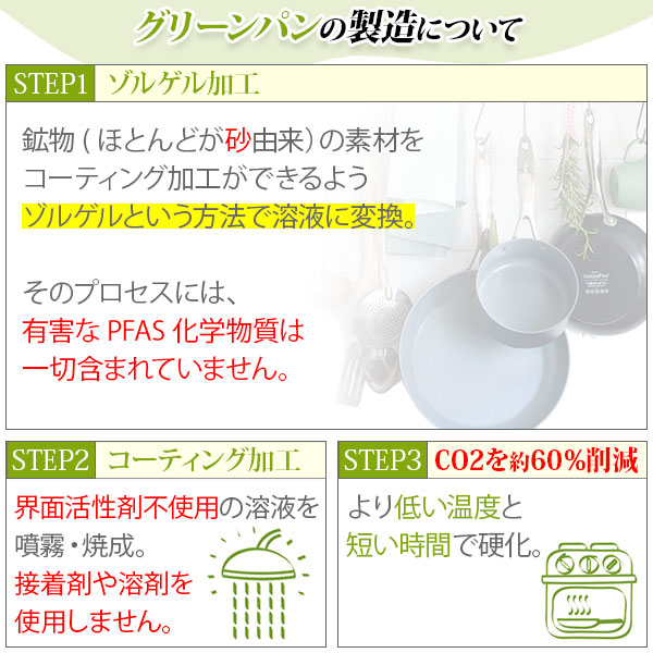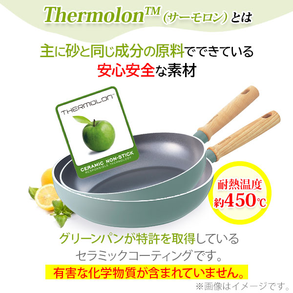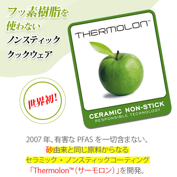 ノンスティック・セラミックコーティングが施され、熱伝導に優れたこびりつきにくいフライパンです。