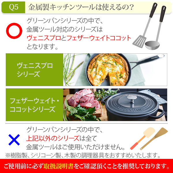 ※金属ツールはご使用いただけません。樹脂製、シリコーン製、木製の調理器具をおすすめします。ご使用前に取扱説明書をご確認頂き、使用方法を守ってご使用下さい。