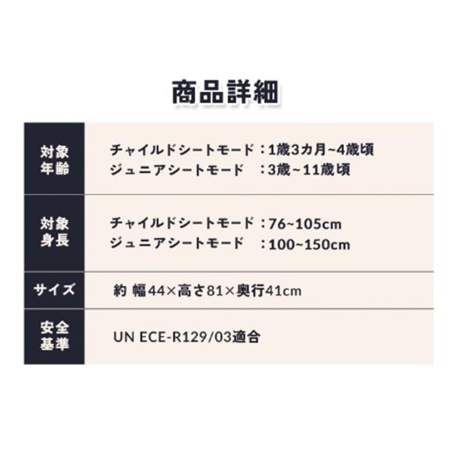 ジュニアモード:3〜11歳頃 身長100〜150cmまで