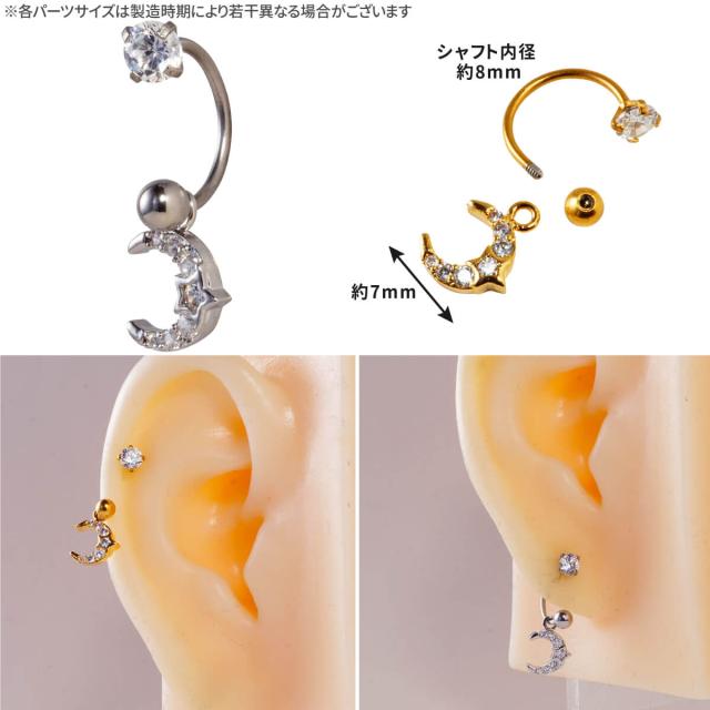 ムーン スター ジュエル チャーム サーキュラーバーベル 20G サージカルステンレス ジルコニア ヘリックス 軟骨 ボディピアス 月 星