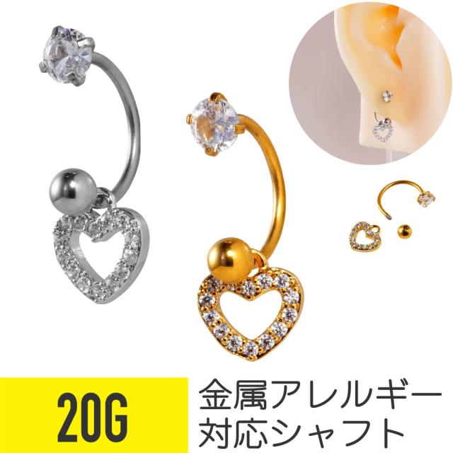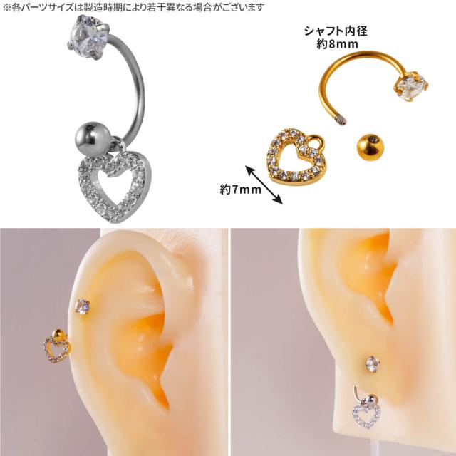 ハート ジュエル チャーム サーキュラーバーベル 20G サージカルステンレス ジルコニア ヘリックス 軟骨ピアス ボディピアス ビジュー