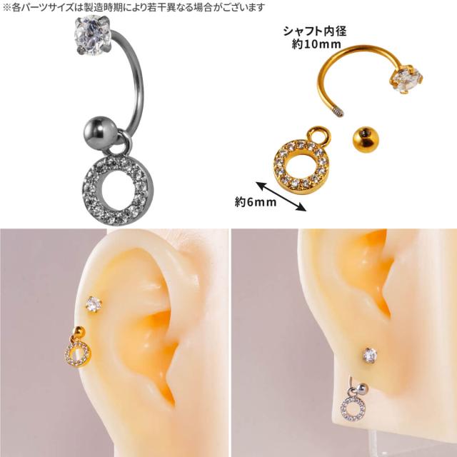 サークル ジュエル チャーム サーキュラーバーベル 20G サージカルステンレス ヘリックス 軟骨ピアス ボディピアス 円 パヴェ ビジュー