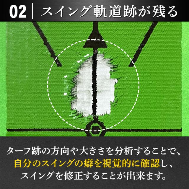 重さがありズレにくくスパンコール素材で軌道跡が見やすい!自分のショットの癖を分析できるターフ跡が確認できるゴルフマットです。