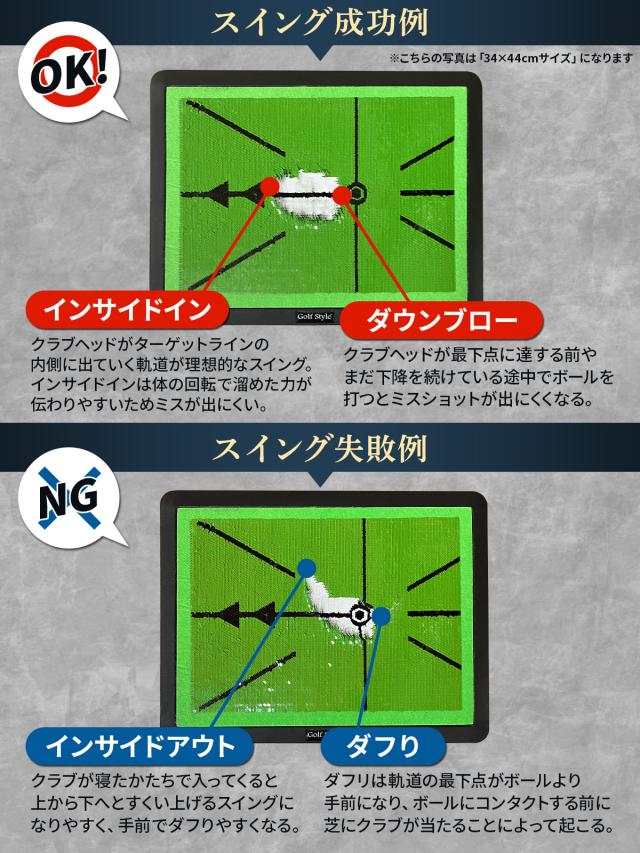 【ターフ跡が確認できるゴルフマット】思った通りにボールが飛ばない!改善しようと思ってもどうしていいかわからない!そんなお悩みを解決できるゴルフ練習マットです。スイングの軌跡が残るので自身でショットの癖を分析できます。