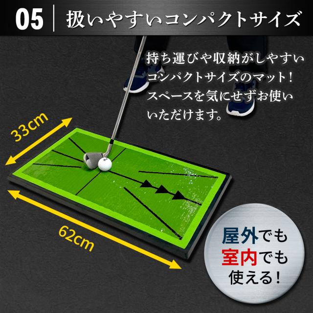 【ショット分析に役立つ目印】クラブ、ボールの置き場所、ティーポイント、打撃方向などのラインなどの目印が付いているので、距離感や入射角、インパクトの強さも調整がしやすい仕様です。また、コンパクトサイズなので持ち運びに便利です。自宅、オフィス、裏庭などのどこでも快適にゴルフの練習ができます。