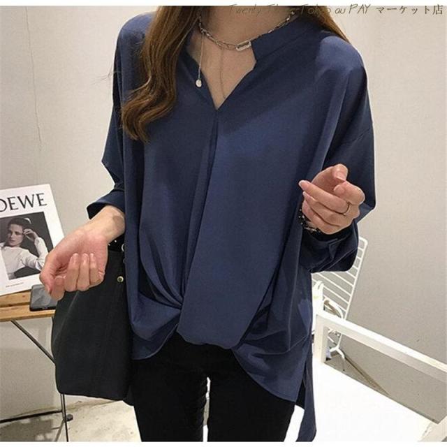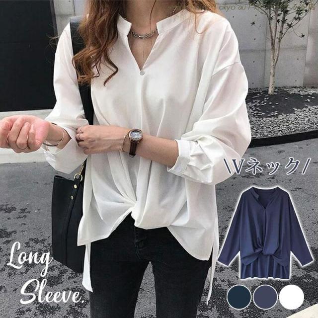 Tシャツ 長袖Tシャツ トップス ブラウス シャツブラウス プルオーバー レディース オフィス vネック 長袖 綿 綿混 無地 コーデ デザイン フォーマル 大きいサイズ ゆったり 着痩せ 新作 新品 上品 エレガンス オシャレ 可愛い きれいめ 大人 OL 体型カパー シンプル カジュアル トレンド 春 秋 30代 40代 50代