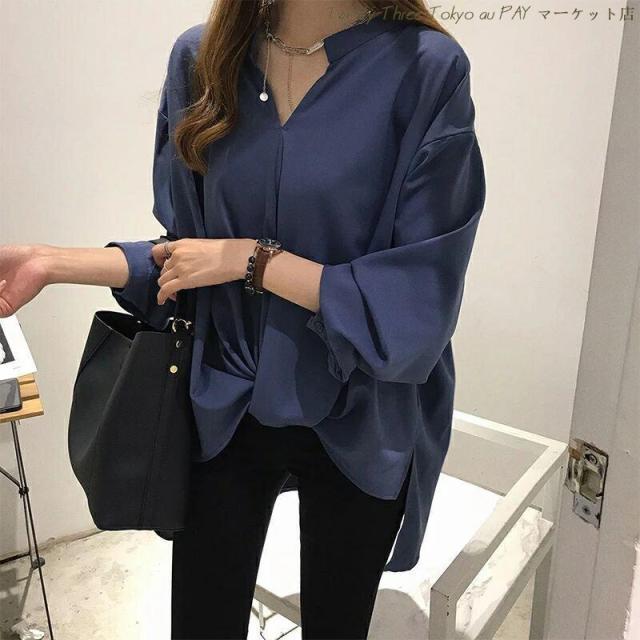 【三太郎の日】ブラウス レディース 無地 シャツ トップス Vネック 長袖 ビジネス 通勤 チュニック オフィス 春服 カジュアル シフォン OL 大人