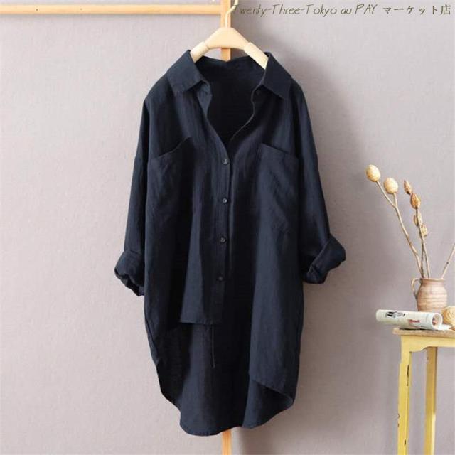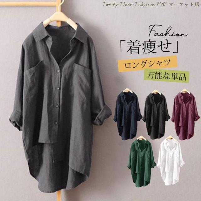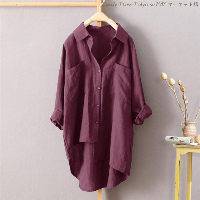 【三太郎の日】シャツ ロングシャツ レディース トップス チュニック シャツワンピ 長袖 無地 ボタン付き 体型カバー 着痩せ カジュアル ゆったり 大きいサイズ