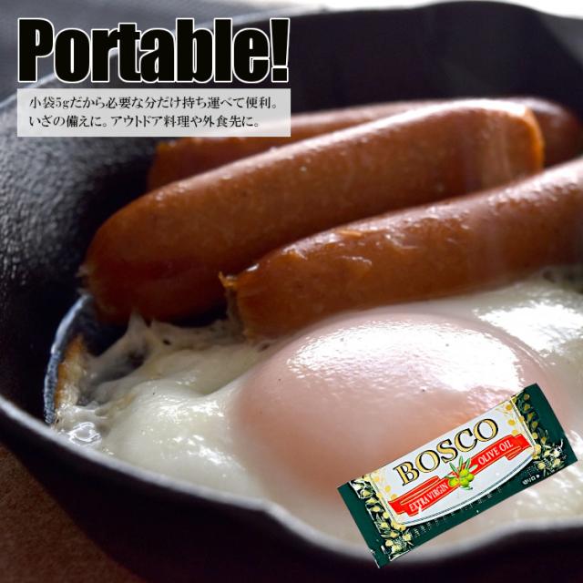 ボスコ エキストラバージンオリーブオイル 5g×500袋 /宅配便 送料無料 小袋 使いきり 調味料 携帯用 アウトドア お弁当 イベント BOSCO パスタ ピザ 小分け こわけや