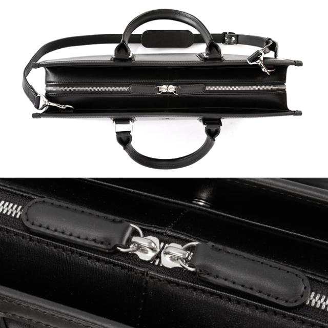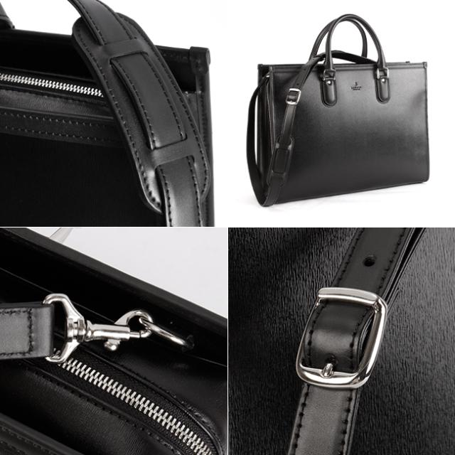| 上品な艶感が魅力。「LANVIN COLLECTION」B4レザービジネスバッグ。 15inchのPC収納や小物ポケットなど、荷物の整理がしやすくなっています。素材には上品な水シボのエンボス加工牛革を使用し、美しいルックス。付属素材には上品な風合いのスムース牛革を使用しています。 ビジネスシーンに役立つ気の利いた収納部 メインルーム内にはファスナーポケット、ペン差し、オープンポケットが2つ、クッションポケット、ペットボトルホルダーが装備されています。クッションポケットは15inchのPC収納に対応したサイズとなっております。 またメインルームの外側両面にあおりポケットがあり、背面側には内装にオープンポケットが2つございます。ショルダーベルトが付属しており、肩掛け・斜め掛けにも使える2WAY仕様のビジネスバッグです。また、底鋲は5つついており、鞄が自立し安定感があります。 |