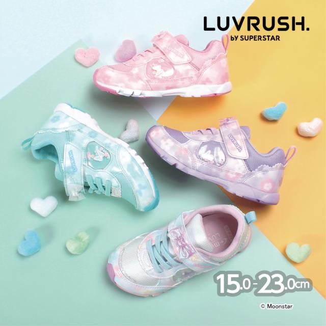 【商品特徴】 『もっと可愛く!もっと速く!女の子のスポーツシーンを足元から応援!』をコンセプトにガールズ向けに誕生した「ラブラッシュ バイ スーパースター」のキッズシューズです。「速く走る」を体現するために搭載されたパワーバネが走りをアシストします。重さは17.0cmで片足約100gです。【パワーバネ】ムーンスター独自開発の特殊なゴムを靴底に搭載し、地面を踏みこむときにパワーを蓄積し、蹴り出すと同時に一気にパワーを推進力に。【Ag+抗菌防臭】銀イオンの抗菌作用でにおいのもととなる菌の増殖を抑制し、防臭効果を発揮します。【洗えるインソール】インソールは取り出して洗えるのでいつも清潔に保てます。【耐摩耗ラバー】靴底にはすり減りが少なく、高い耐久性を発揮するラバーを採用しています。モヤ柄やシャカシャカパーツ、リボンをあしらったキュートなデザインです。胸がときめくようなモチーフがたくさん詰った、女の子らしさが光る一足です。運動会や体育の時間、クラブ活動等の走るシーンにおすすめです。