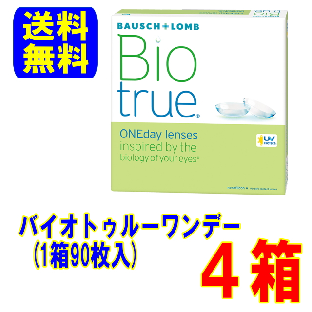 バイオトゥルーワンデー 90枚入 4箱 メーカー直送 送料無料 1日使い捨て コンタクトレンズ ワンデー 高含水率 UVカット ボシュロム