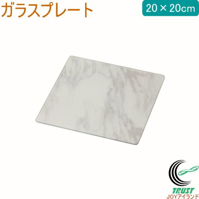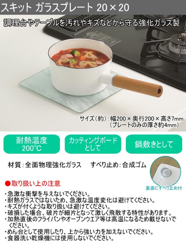 スキット ガラスプレート 20×20cm 1枚 HB-6928 強化ガラス 傷防止 汚れ防止 カッティングボード 鍋敷き 調理台