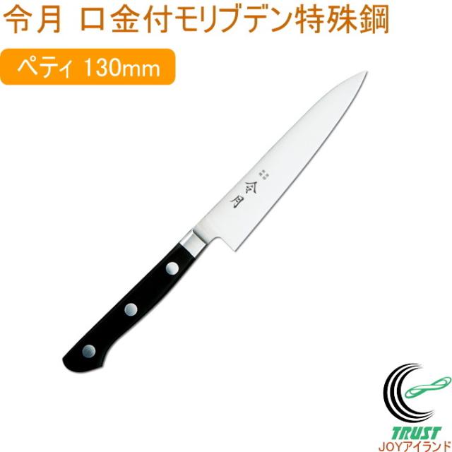 令月 口金付モリブデン特殊鋼包丁シリーズ ペティナイフ 130mm FC-1040 送料無料 両刃 包丁 庖丁 ペティナイフ 調理