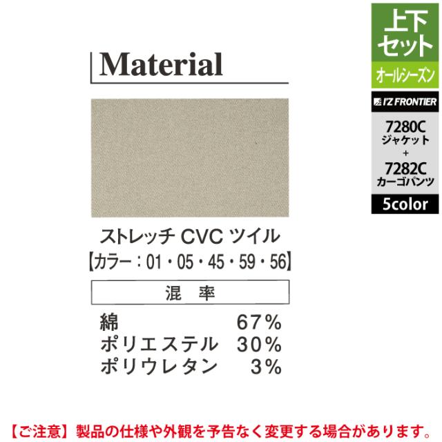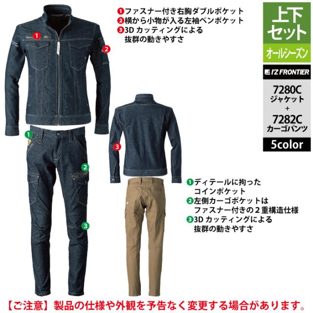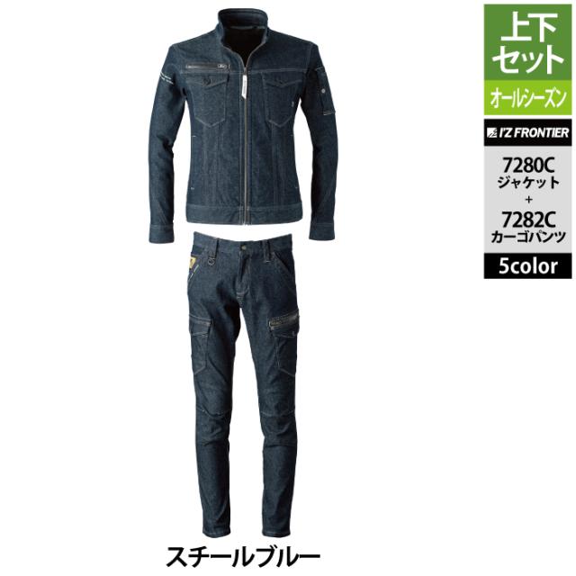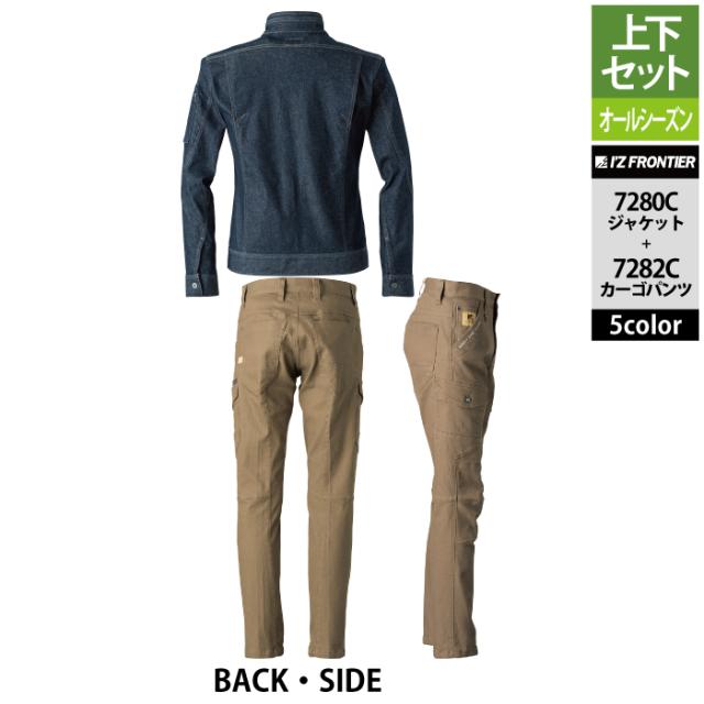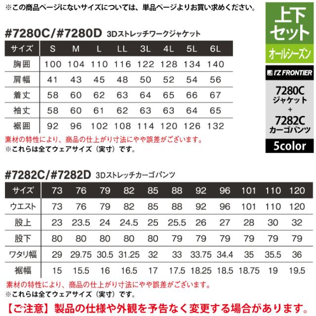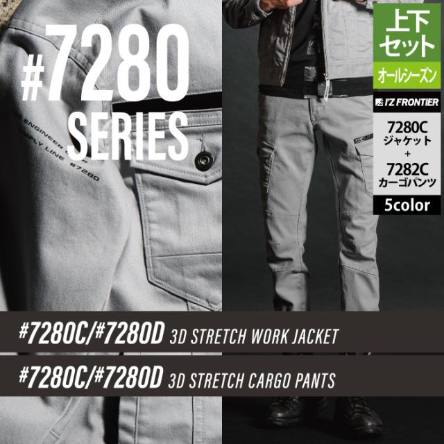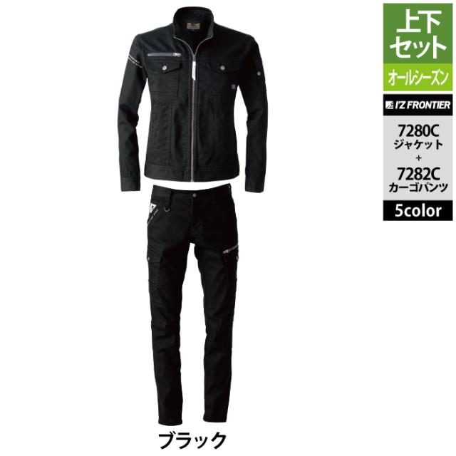 アイズフロンティア 作業服 上下セット 7280C 3DストレッチワークジャケットM-3L と 7282C 3Dストレッチカーゴパンツ 73-120 オールシーズン