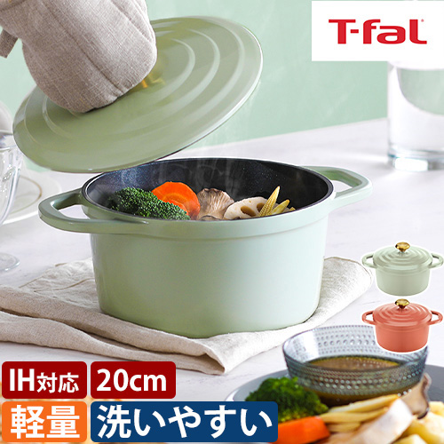 両手鍋 鋳物鍋 キャセロール 20cm 深型 軽い 焦げ付かない くっつかない かわいい おしゃれ ih対応 ガス火 ブランド 食洗機対応 使いやすい 無水調理 ティファール キャストライン エアココット 20cm T-FAL E26844 E26744