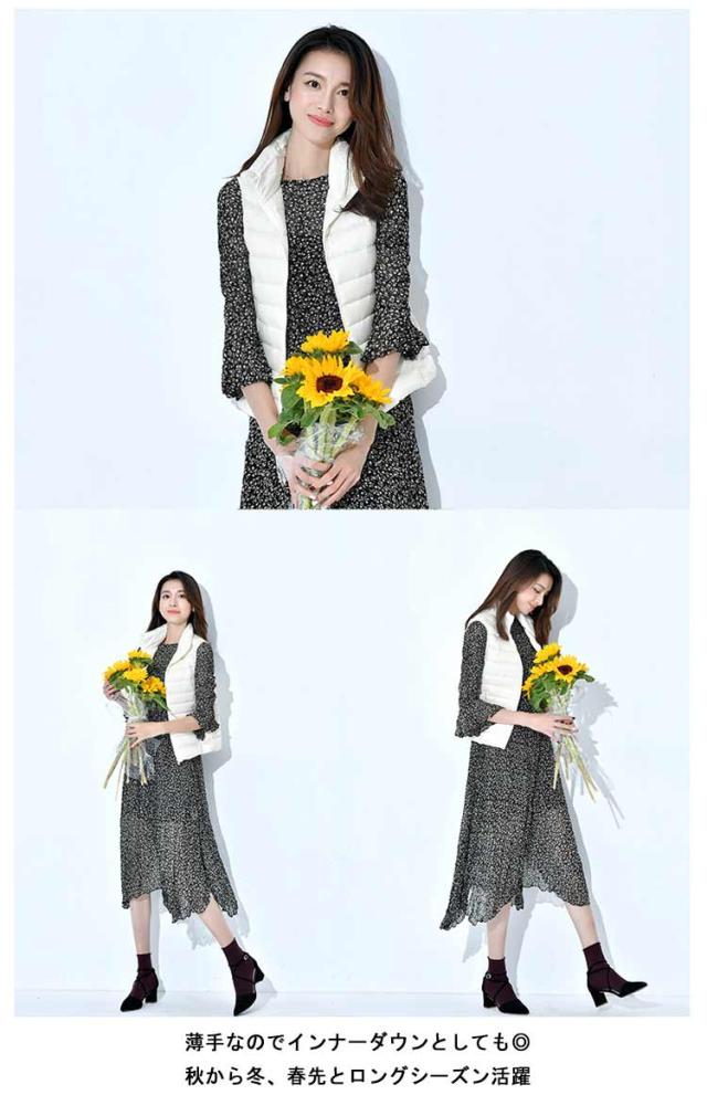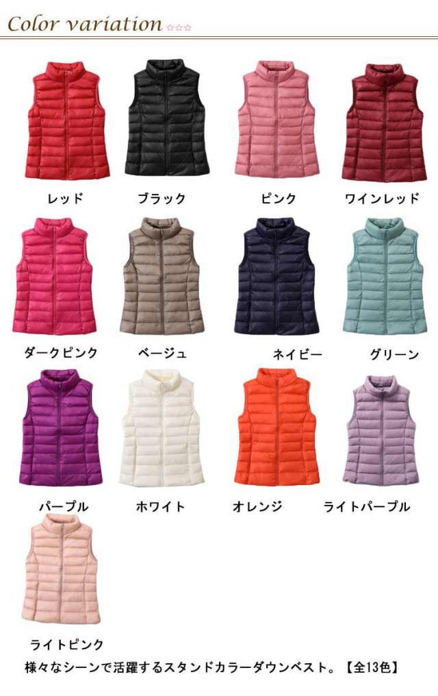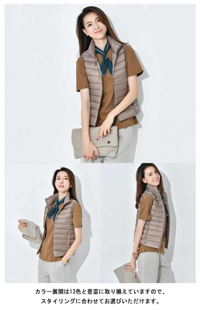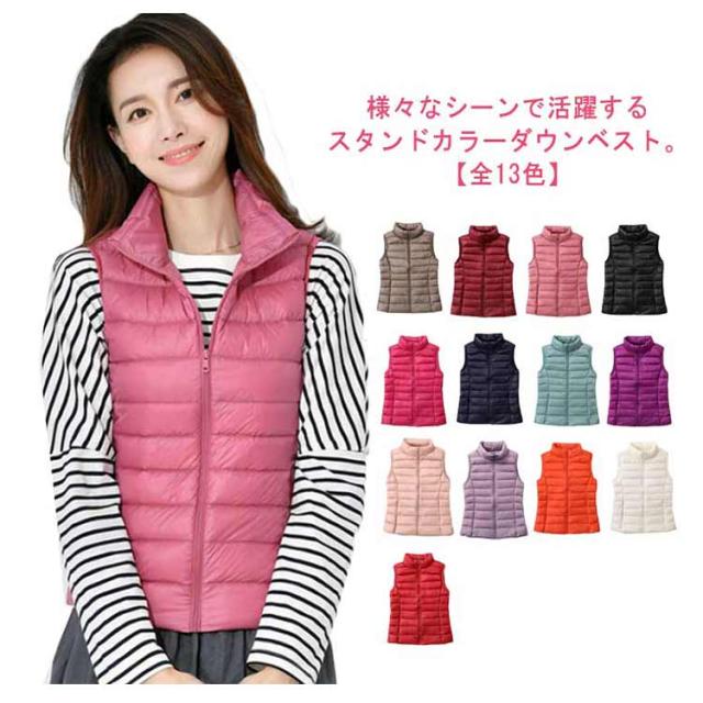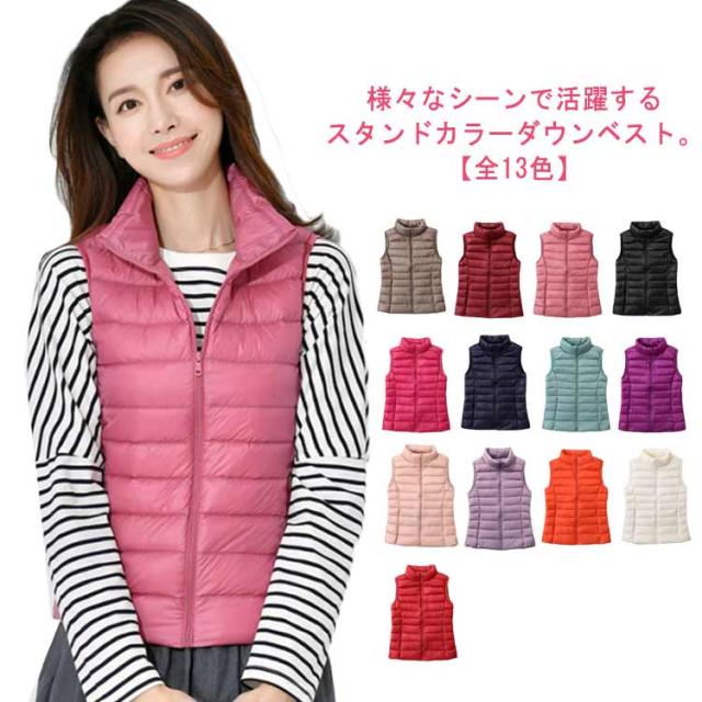 ダウンベスト レディース インナーダウン ベスト スタンドカラー 立ち襟 ダウンジャケット ダウンコート ショート 大きいサイズ 軽量 軽い 薄手 秋冬 暖かい あったか 防寒 保温 ライトダウン インナー ベスト 30代 40代 50代 紫 パープル ホワイト 白 【送無】