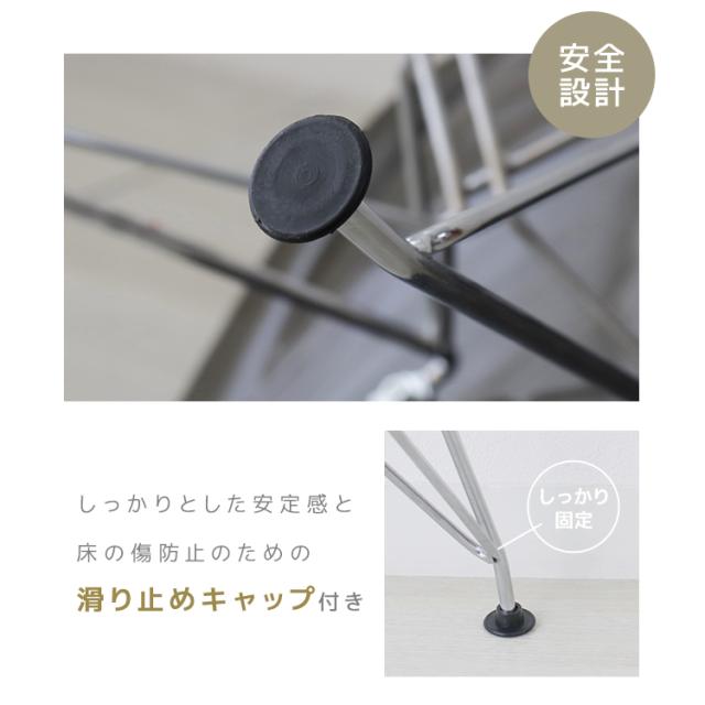 脚部先端にはプラスチック製の保護パーツ付きで床の傷を防ぎます。