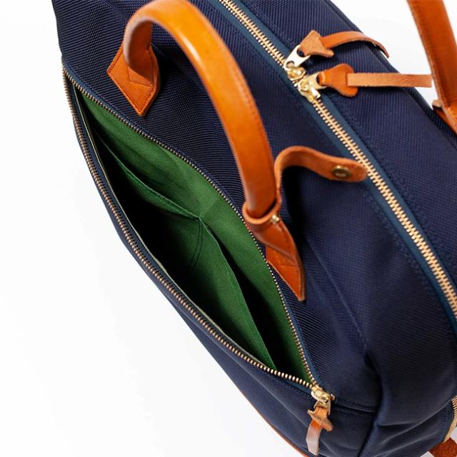 | 仕事と旅行を両立する新しいボストンバッグ 働き方が多様化する現代において、出張や旅行先での仕事を想定したボストンバッグ。ボストンバッグの容量にブリーフケースの機能を搭載。両方を兼ね備える贅沢な唯一無二の存在。 ボストンバッグの収納量とブリーフケースの機能性を融合させた「仕事と旅行」の両立を実現したバッグ。 収納量は18Lとなり小ぶりのボストンバッグに分類。必要最低限の仕事道具と着替えのみを納めることを想定、2泊までの使用に適したサイズ設計としている。マチまでファスナーが走っており大口に開くので収納物が取り出しやすくなっている。 本体の前胴と後胴、底には厚口のウレタンがサンドイッチされており、外からの衝撃を吸収。内装のPCポケットは16インチのノートPCまで収納可、その手前のポケットにはガジェット類を納めるサブポケットを2つ配置。そして対面にあるファスナーポケットは、衣類や身の回り品を収納することを想定。その上部に鍵やイヤホンケースなど小さな小物を入れておく吊りポケットを配置。 外装はシンプルなデザインとなっており、後胴にファスナーポケットを配置、開口すると中に個別のオープンポケットが2室配置。スマートフォンやウォレット、手帳などを収納可。 メイン素材にバリスターナイロン。そしてハンドル、袴や底には厚口オイルシュリンクレザーを贅沢に使用。パーツやファスナーは金属製を使用。 |