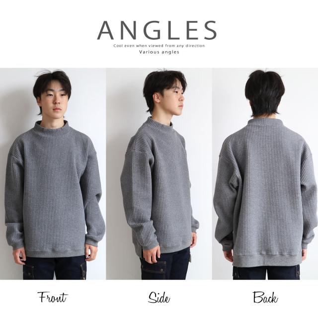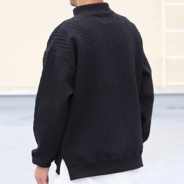 オーディエンス 「尾州」コットンキルトモックネック プルオーバーカットソー Upscape Audience ケーブル柄 ストライプ ( AUD6549 ) ハイネック アップスケープオーディエンス 長袖Tシャツ 日本製 無地 メンズ トップス おしゃれ アーベン