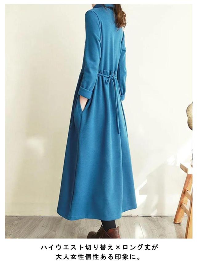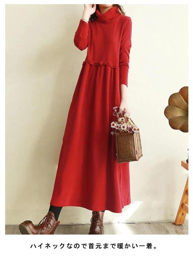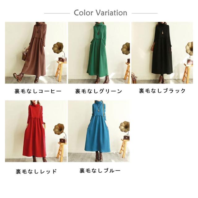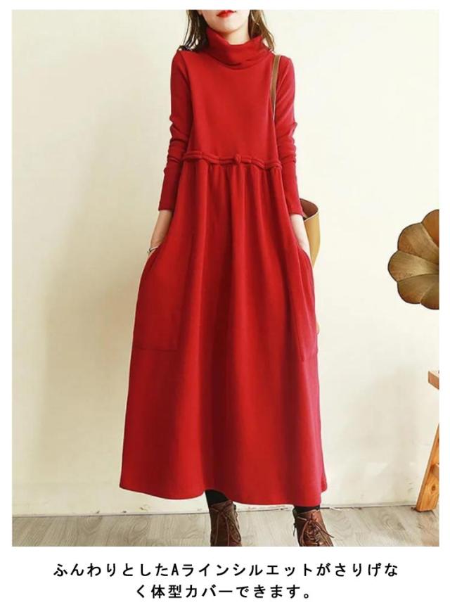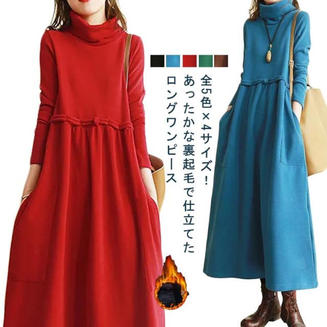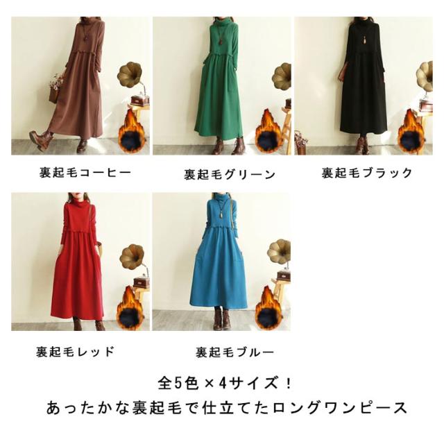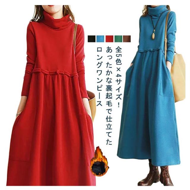 ロングワンピース 秋冬 マキシワンピース 裏起毛 ゆったり あったか ハイネックワンピース カジュアル ギフト 無地 重ね着 ワンピース ポケット付き 冬物 体型カバー 長袖 マキシ丈 ゆったり シンプル 大きいサイズ 通勤 着?せ 大人女性 プレゼント 冬服