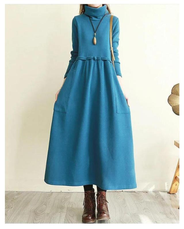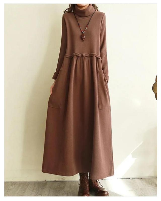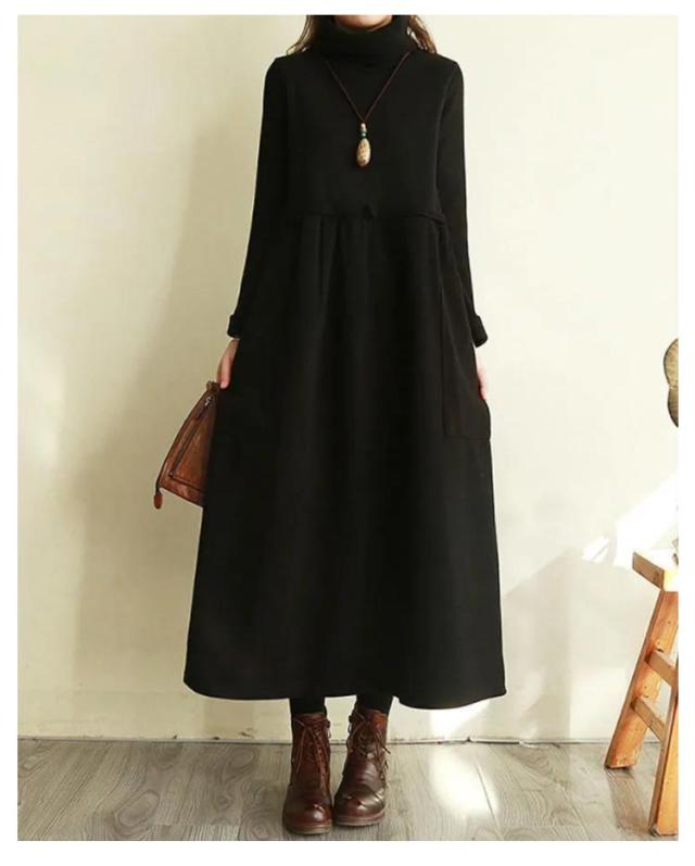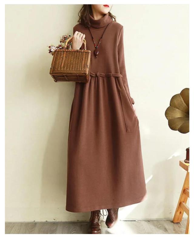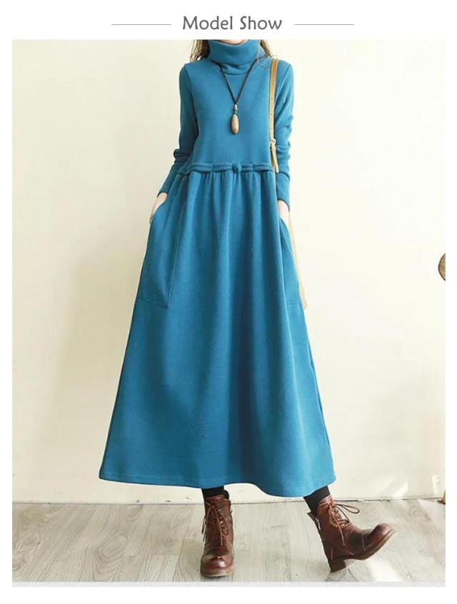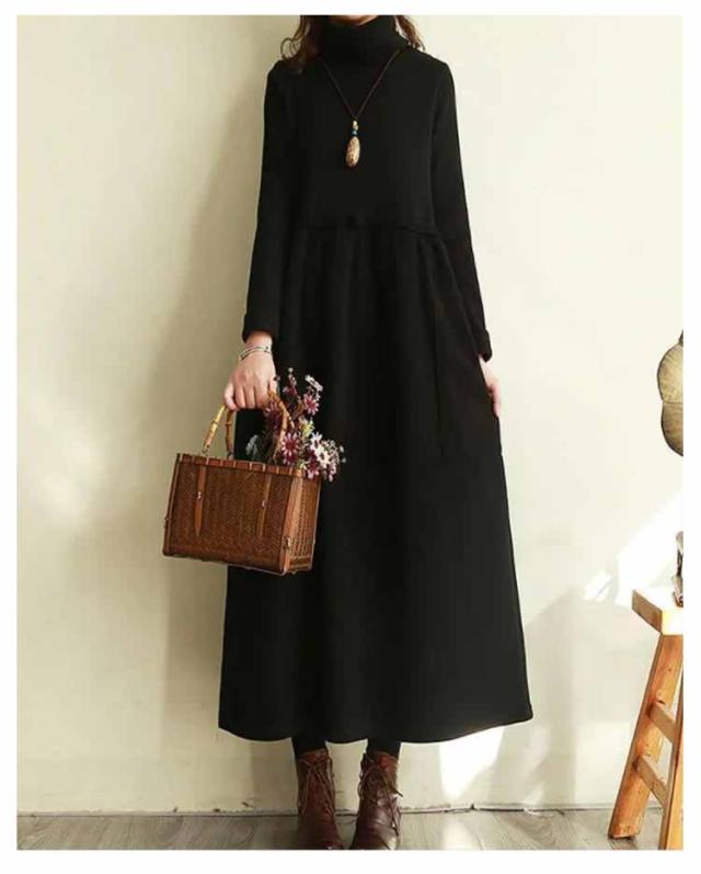 ロングワンピース 秋冬 マキシワンピース 裏起毛 ゆったり あったか ハイネックワンピース カジュアル ギフト 無地 重ね着 ワンピース ポケット付き 冬物 体型カバー 長袖 マキシ丈 ゆったり シンプル 大きいサイズ 通勤 着?せ 大人女性 プレゼント 冬服