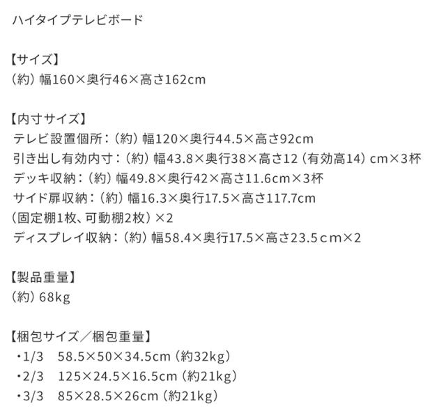 ハイタイプ50インチテレビボード 〔マディアッカ〕 オークナチュラル 【北海道・沖縄・離島配送不可】