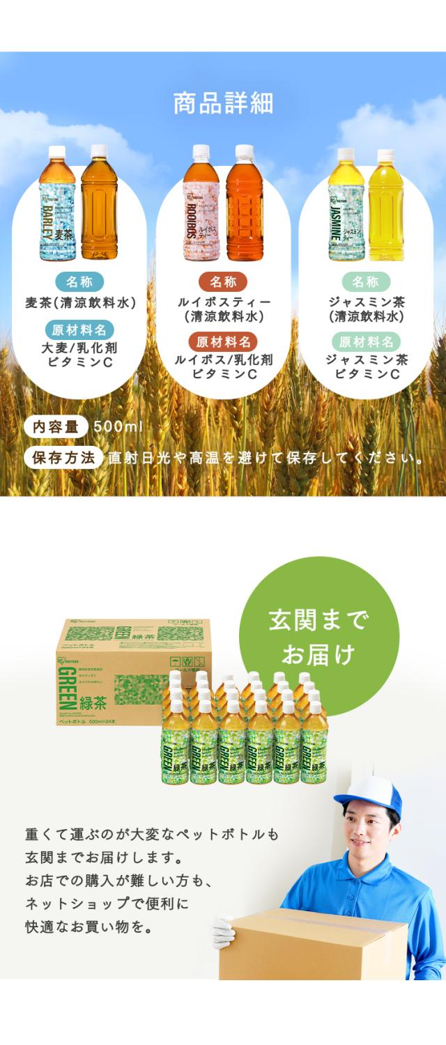 お茶 24本 500ml ペットボトル 緑茶 麦茶 烏龍茶 ルイボスティー ほうじ茶 ジャスミンティー [代引不可] 全6種類 アイリスオーヤマ 清涼飲料水 むぎ茶 ルイボス茶 焙じ茶 アイリスフーズ ペットボトル 爽やか 香る 食事 スポーツ 持ち歩き