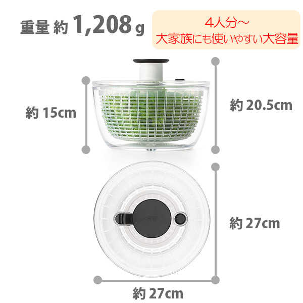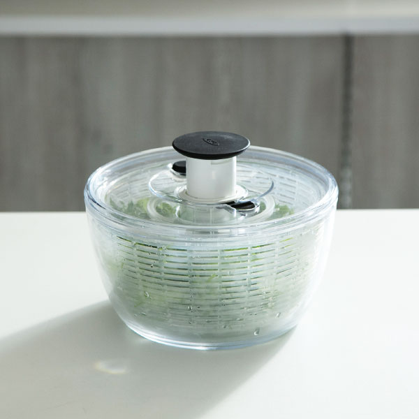 アメリカOXOオクソー社のロングランHITアイテム、野菜の水きりが簡単に素早くできる、クリアサラダスピナー大がリニューアルして新登場!