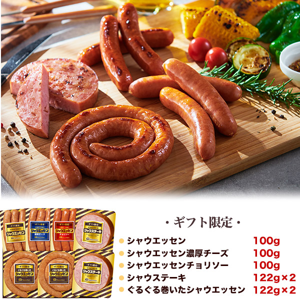 ギフト限定)シャウエッセン100gギフト限定)シャウエッセン濃厚チーズ100gギフト限定)シャウエッセンチョリソー100gギフト限定)シャウステーキ122g×2ギフト限定)ぐるぐる巻いたシャウエッセン122g×2