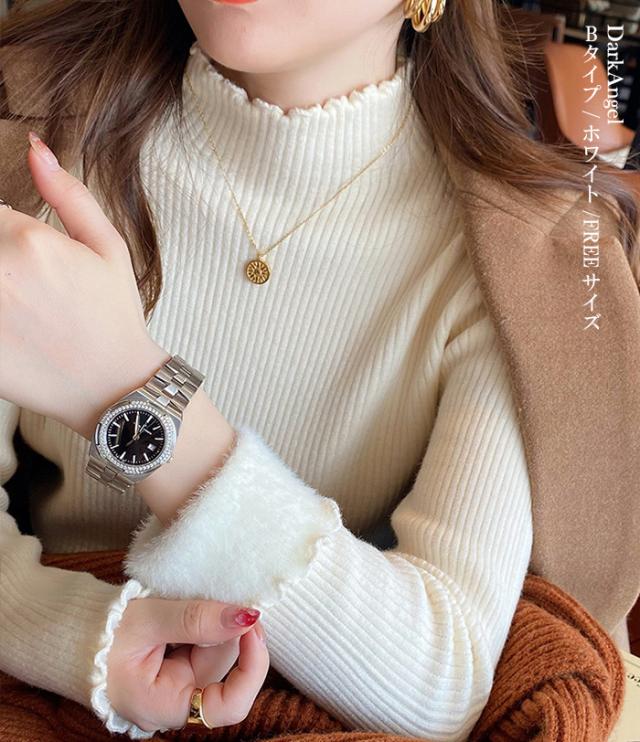 プチハイネックネックデザインで、カジュアル過ぎずに、きれいめに着こなせます。