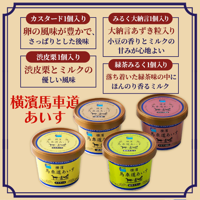 商品名 横濱馬車道あいす&あいすもなか 計12個 TBW2Y 容量 【あいす】カスタード・渋皮栗・みるく大納言・緑茶みるく各110mL×1個