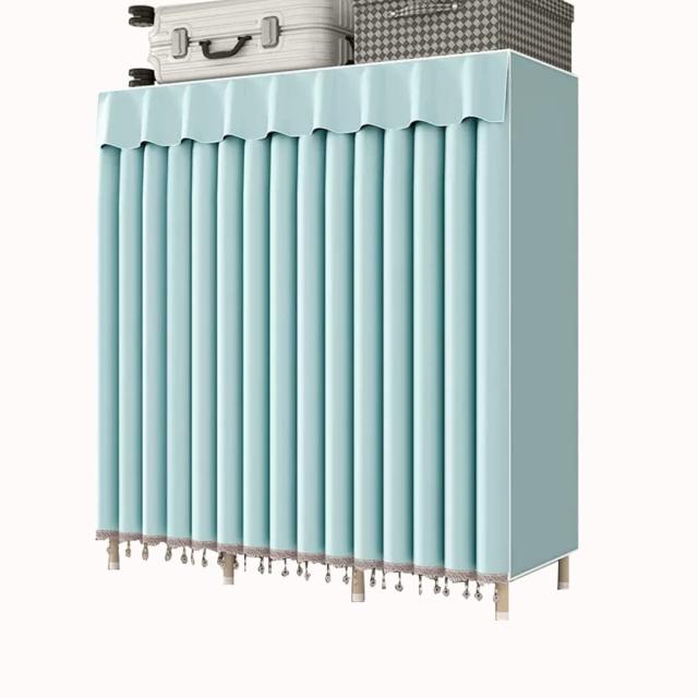 ワードローブ カバー付き 大容量ストレージ クローゼット カーテン式 組み立て式 亜鉛メッキ鋼管 無地カバー 耐久性 幅130×奥行50×高さ180CM ライトブルー