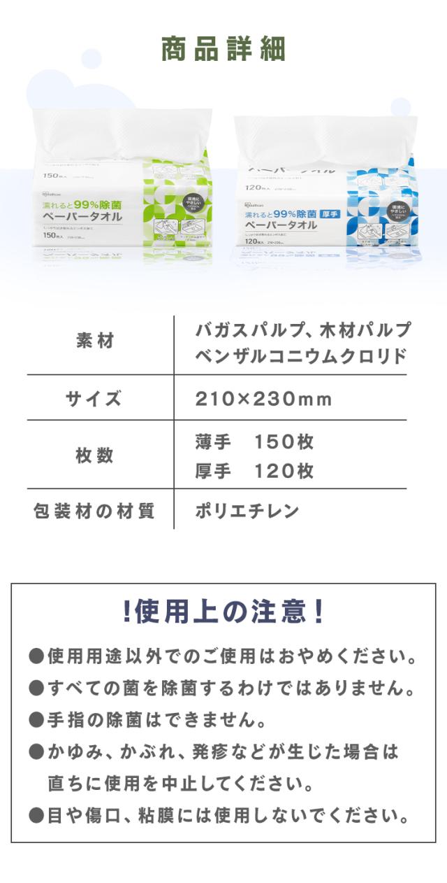 【900枚】 ペーパータオル 中判 薄手 150枚×6個 濡れると99%除菌 拭き掃除 キッチン 洗面台 使い捨て 除菌シート 一人暮らし 新生活 アイリスオーヤマ JPT-150 *